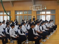 後期始業式 2025年10月20日 最終更新日時 : 2025年10月20日 kumagaya_edit 第1校時に、後期始業式を行いました。3日間の短い秋休みが終わり、今日から後期のスタートです。後期も、生徒の皆さんがいろいろなことに挑戦して、一歩ずつ着実に成長してくれることを願っています。