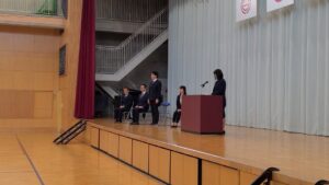 最後には、感謝の気持ちを込めて全校生徒で校歌を斉唱しました。転出される先生方とは直接的な関わりのない1年生も一生懸命校歌を歌っていました。