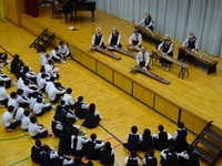 学年合唱の他にも、地域の「コール条里」による合唱、音楽部の箏の演奏、3年生による中条節樽踊りなど、様々な演奏が披露されました。