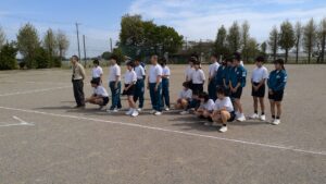 校庭に白いラインを引いて道路を再現し、交差点での「一時停止」や、停車中の車両を避ける際の「安全な進路変更」など、実践的なルールを学びました。