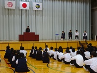 生徒会本部役員引継式 2025年10月28日 最終更新日時 : 2025年10月28日 kumagaya_edit 本日、生徒会本部役員引継式を行いました。第79代生徒会本部役員の皆さん、1年間ありがとうございました。第80代生徒会本部役員の皆さん、旧生徒会の思いや仕事を受け継ぎ、中条中がさらによりよい学校になるよう活躍を期待しています。 第80代生徒会長のことば 第79代生徒会長のことば
