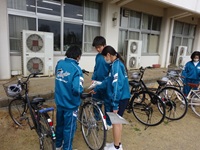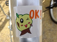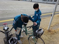 生徒が登下校や日常生活で使用している自転車について、保健安全委員の生徒が点検を行いました。点検の結果、不良箇所がなかった自転車には、本校のマスコットキャラクター「くすのっきー」の合格シールを貼りました。