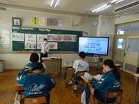 生徒たちはまず教科書を見ながら繰り返し音読を行い、その後、教科書本文の慣用的な表現や基本的な語句が空所になっているワークシートを使い、空欄に入る英語を考えながら穴あき音読に取り組んでいました。