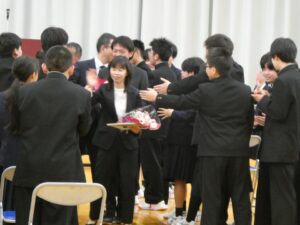 17日、離任式を行うにあたり、本校を転出された4名の先生方をお迎えしました。 代表生徒が感謝の手紙を読み上げる場面では、別れの寂しさに涙で言葉が詰まってしまうシーンもあり、会場は温かな感動に包まれました。最後には、感謝の […]
